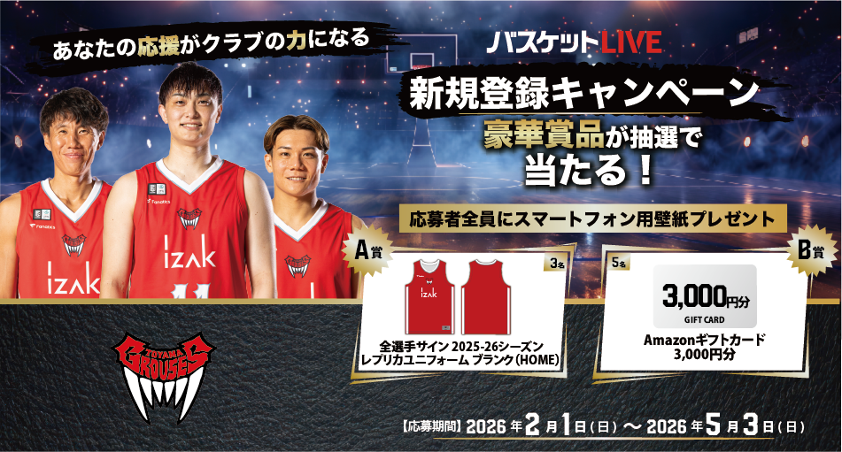 バスケットLIVE新規登録キャンペーン実施中!クラブ専用URLから登録して豪華賞品をゲットしよう!