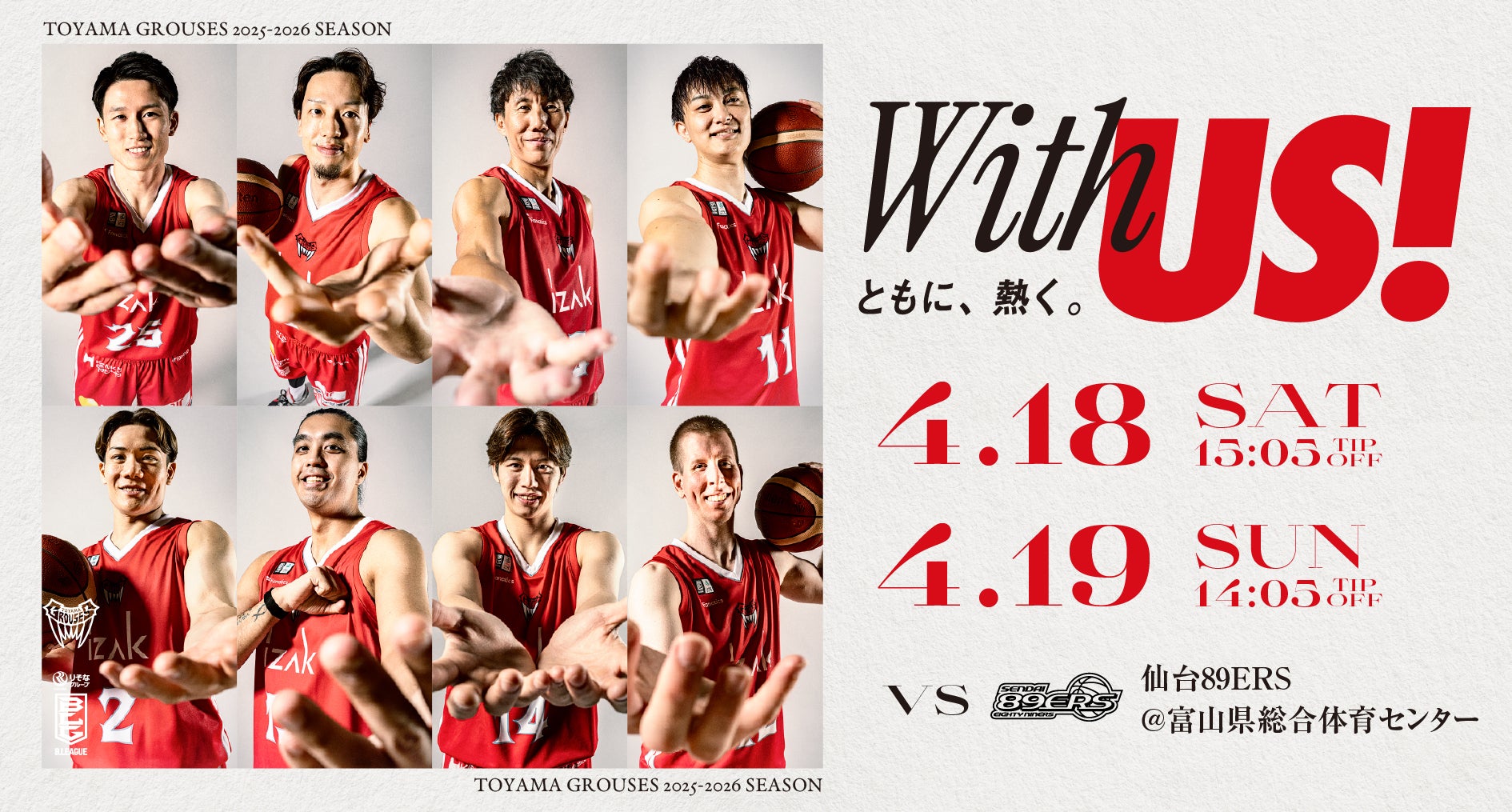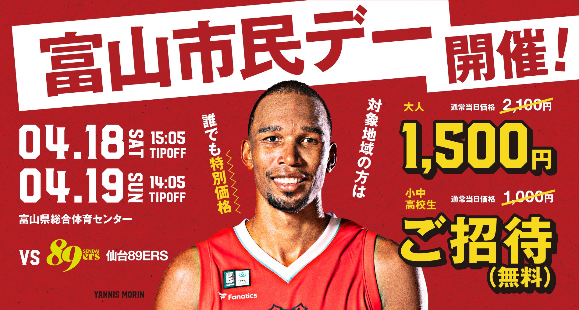 【ゲーム情報】ネッツトヨタ富山presentsホームゲームvs仙台89ERS(4月18日・19日)