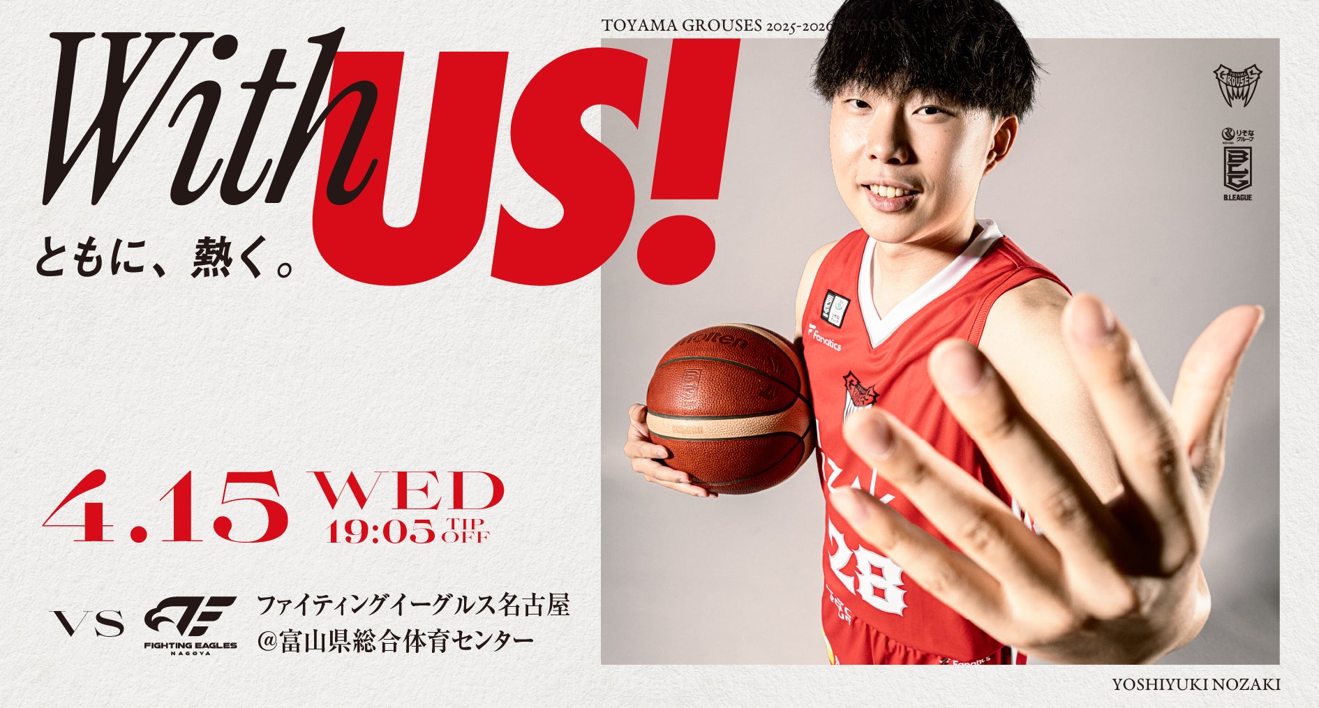 【ゲーム情報】チューリップテレビpresentsホームゲームvsファイティングイーグルス名古屋(4月15日)