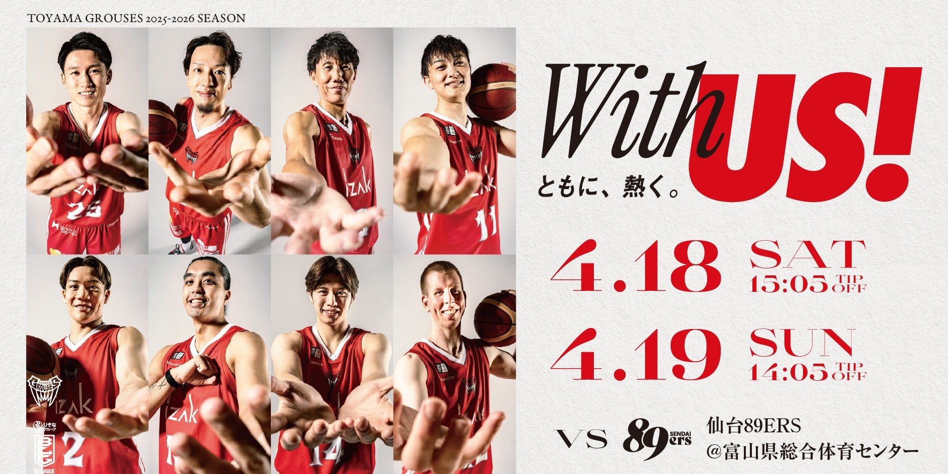【ゲーム情報】ネッツトヨタ富山presentsホームゲームvs仙台89ERS(4月18日・19日)