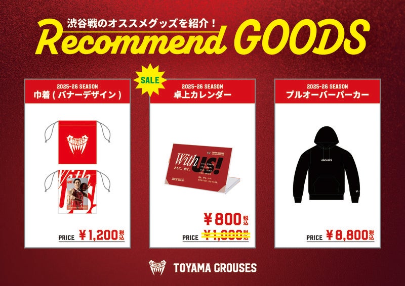 1月24日(土)・25日(日)に富山県総合体育センターにて開催されるサンロッカーズ渋谷戦にてグッズ販売を行います。