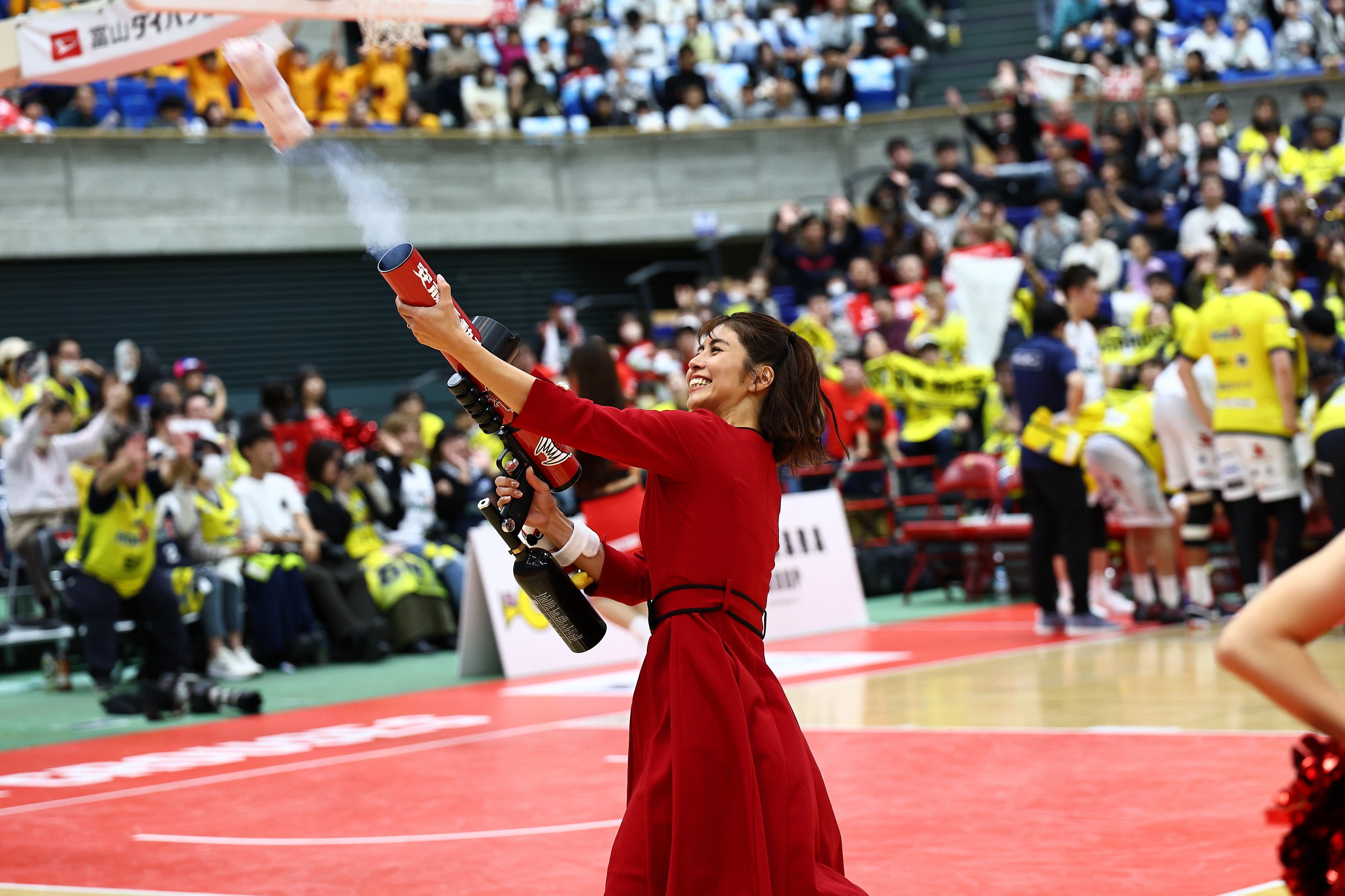 3-4Q間は、ミタスト光ケーブルテレビ富山presentsバズーカタイムとして、選手サイン入りレプリカユニフォームを3名様にプレゼント!ご自身のお座席でアピールしてください。(※写真は2024-25シーズン)■ スペシャルハーフタイムパフォーマンス