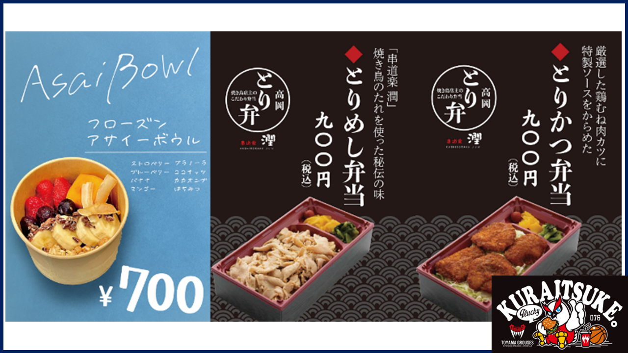 アルコールやソフトドリンクなどの各種ドリンクを取り揃えております。アリーナ内にビールの売り子も登場予定です!また、とやまスムージー(1個600円)を販売します。富山県産の未利用野菜と果物を使用したフレッシュなスムージーとなっております!
