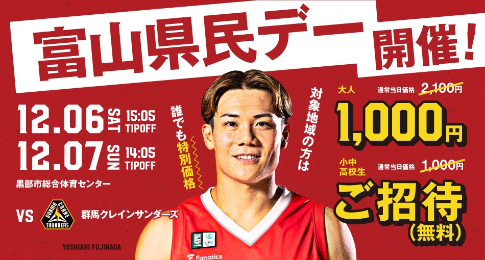 今節は「富山県民デー」を開催いたします。富山県民であれば、大人1,000円、小中高校生は無料ご招待!12月2日(火)まではこちらから事前申込が可能です。WEB操作が苦手な方は、当日券売場で身分証明書をご提示いただくとご購入いただけます。