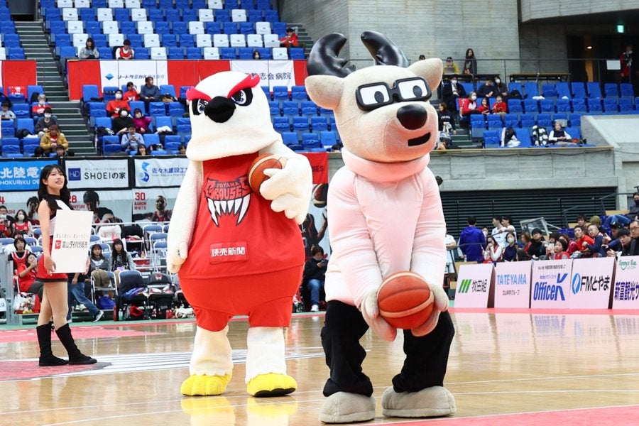 富山ダイハツ販売公式マスコットキャラクターカクシカくんとグラッキーとスリーショットを撮ろう!下記の時間帯において、アリーナ内2階のホーム側エンドスペースにて実施いたします。① 11時30分~11時45分